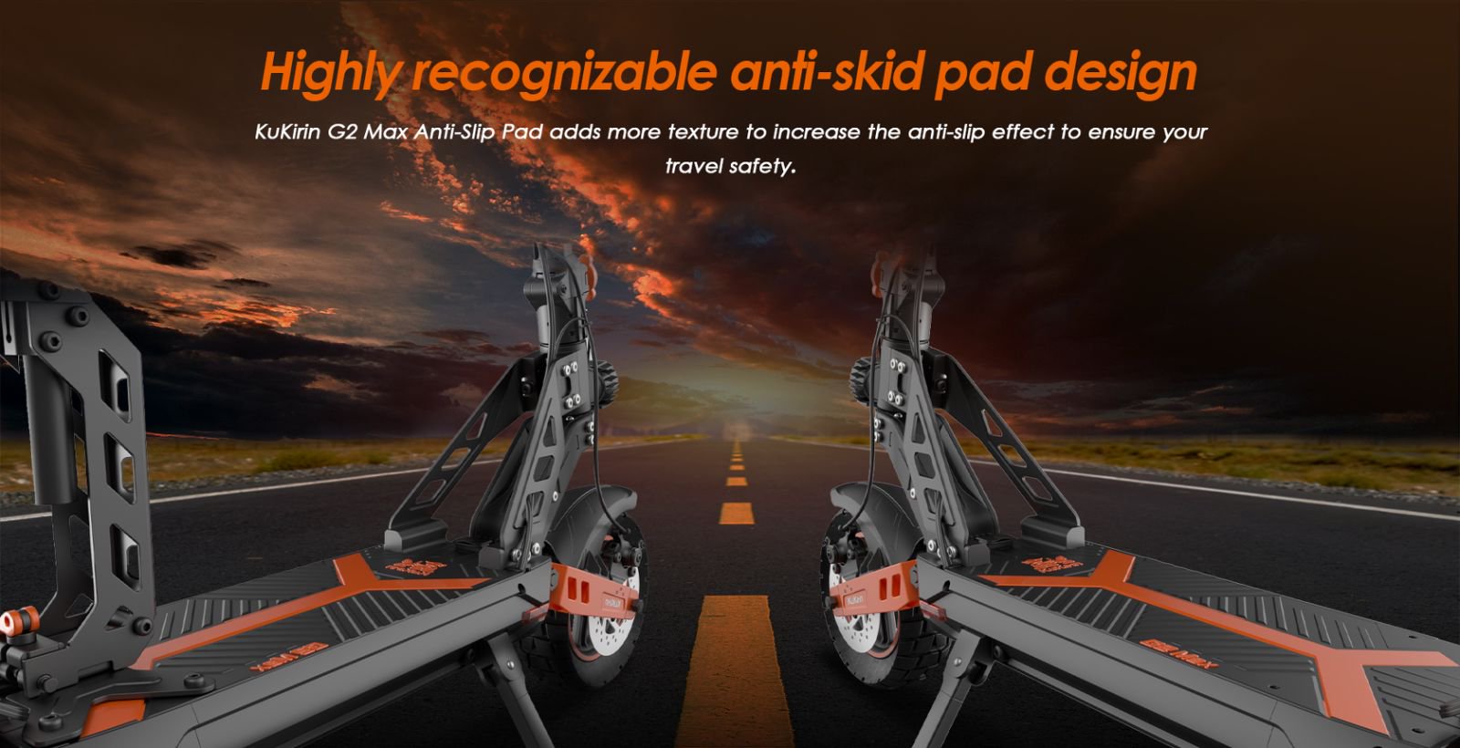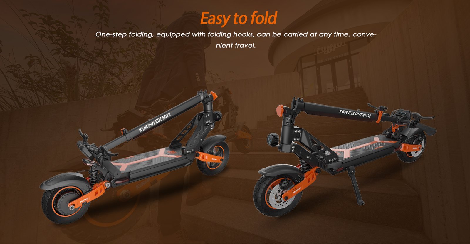 KuKirin G2 Max's fine-tuned spring shock absorbers can effectively cushion the bumps caused by difficult terrain, bringing you more riding fun.