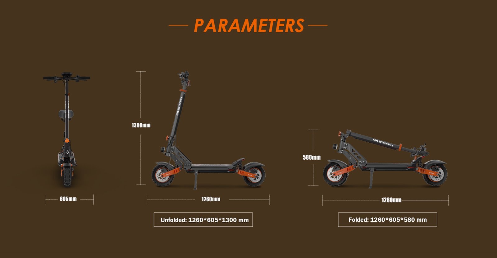 Net Weight: 31KG Unfolded Size: 1260*605*1300 MM Folded Size: 1260*605*580 MM |