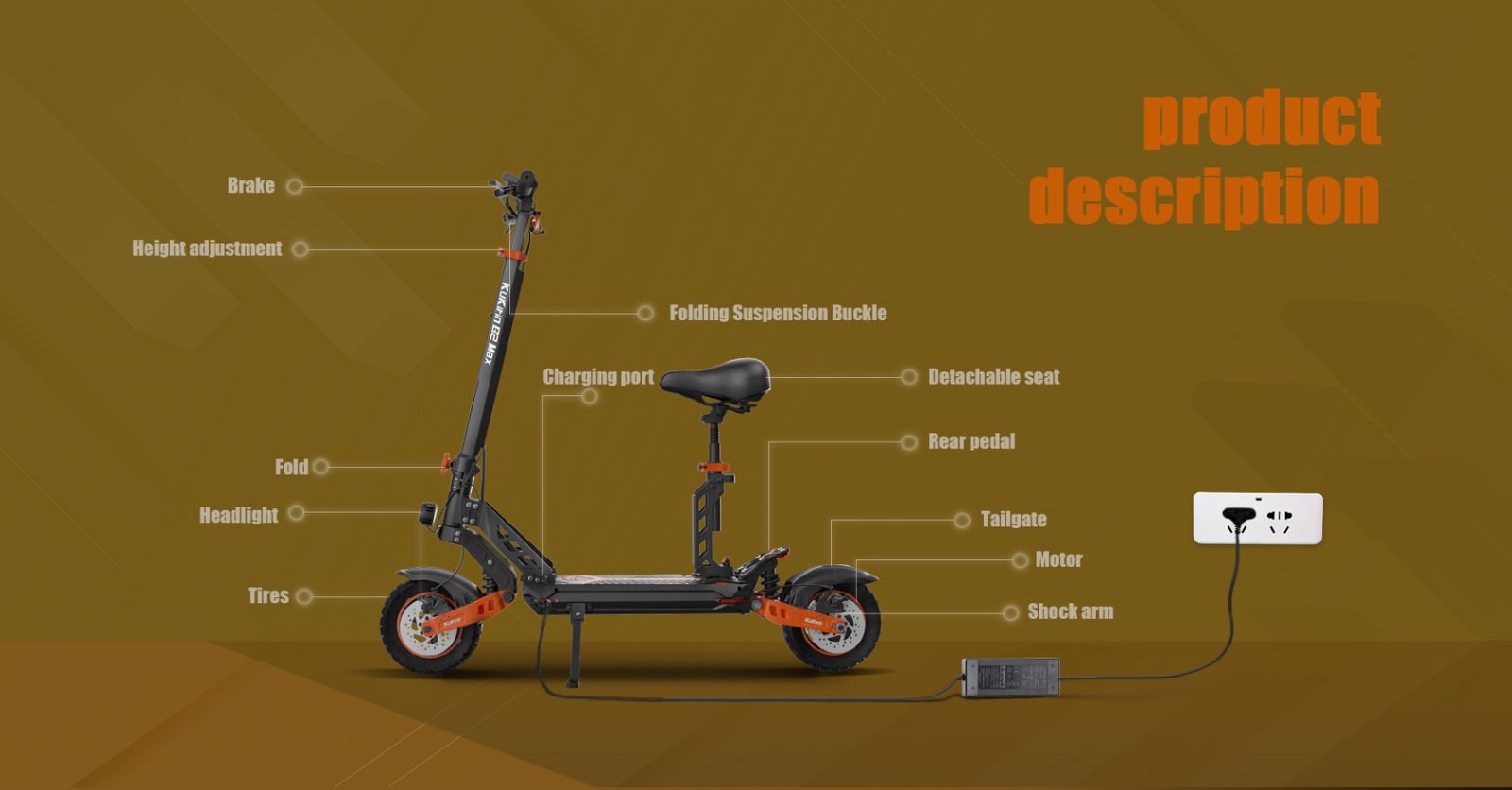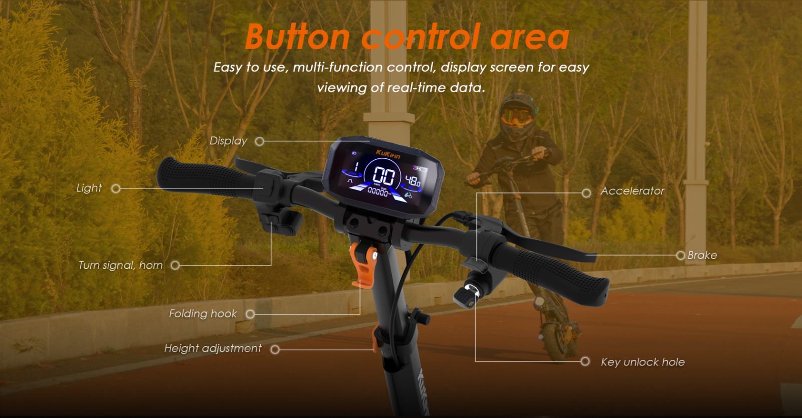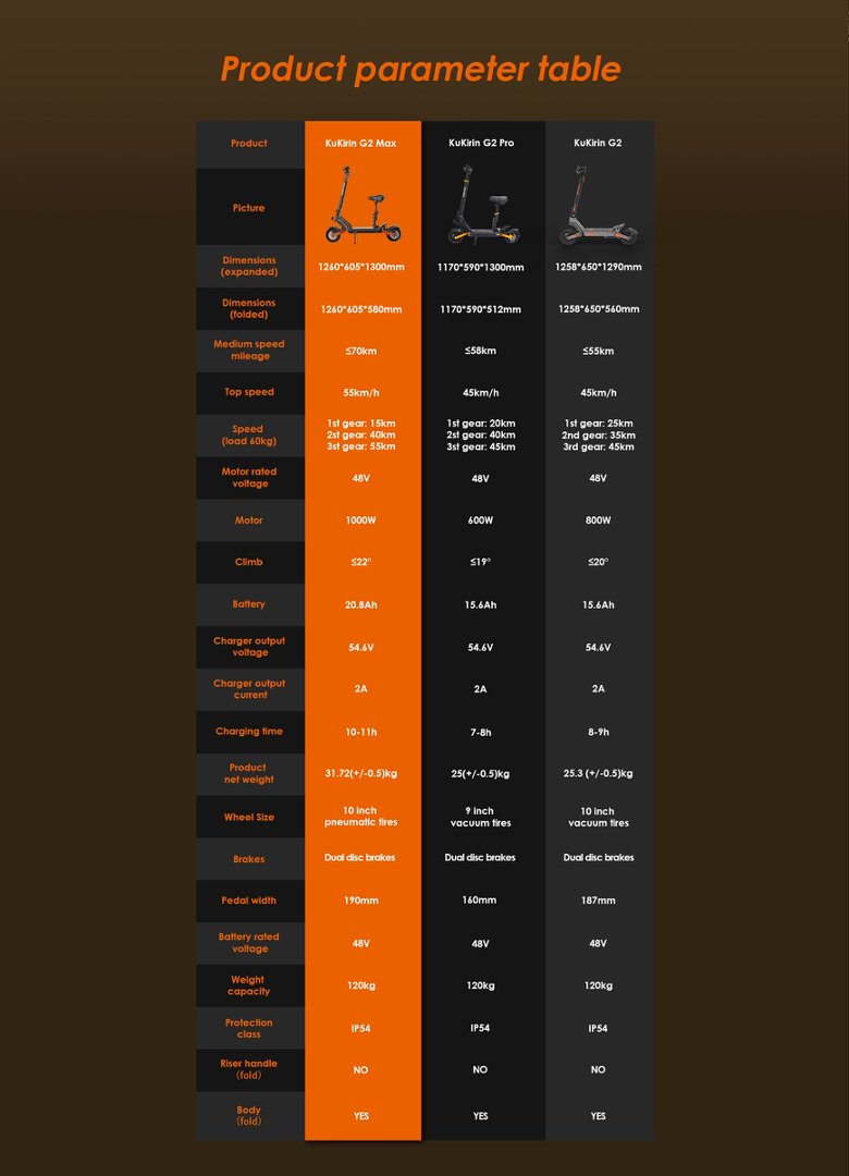KuKirin G2 Max uses 48V 20Ah large capacity lithium battery, and provides as long as 80km range, no more worry about the mileage.