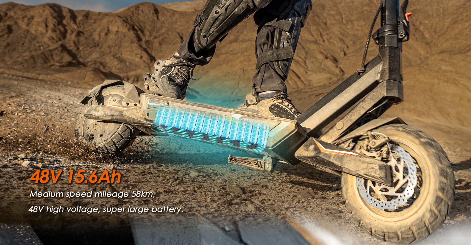 The KuKirin T3 comes with a 48V 15.6Ah high-voltage, super-large capacity battery, enabling a medium-speed mileage of 58km. This reliable battery delivers long-lasting power for extended trips, whether you’re cruising through city streets or venturing onto rugged paths, ensuring you can ride with confidence.
